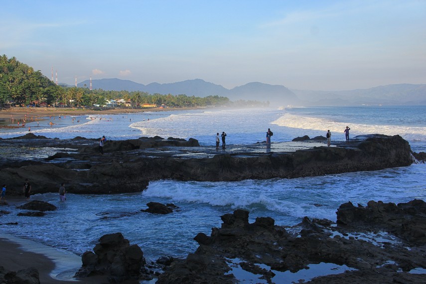 Also, in this beach is purposed for who likes to surf. This beach also have a big wave who can attracts the surfer. The characteristics of this beach is its stones on the lip of the beach is heading toward the sea. The stone is like the bowl, that is why this beach is called Kawang Hawu, which means bowl.